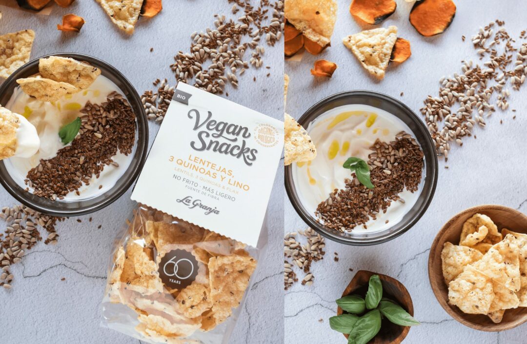 4. Ja està llest per acompanyar amb els Vegan Snacks de La Granja! Et recomanem dipejar amb els Vegan Snacks de Llenties, 3 Quinoes i Lli!